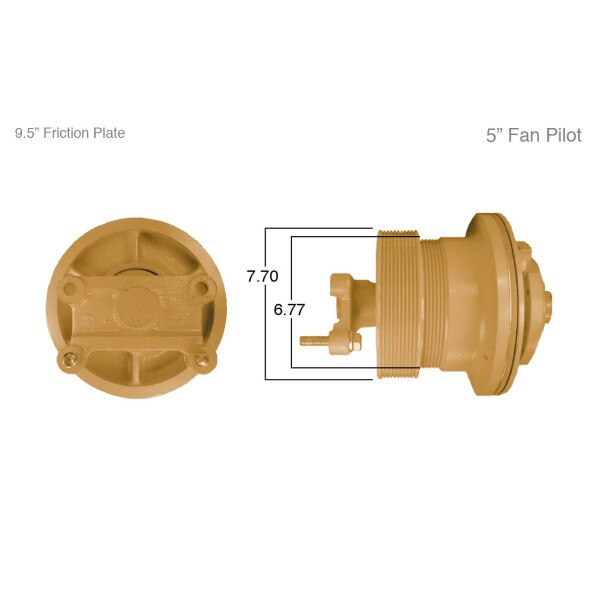 5 inch fan pilot. 7.7 inches; 6.77 inches. Kit Masters, air-engaged remanufactured fan clutches combine superior materials and advanced innovations making them the easy choice for replacing Horton HT/S-style fan clutches. The Viton o-rings withstand temperatures up to 400 degrees and resist drying out. Kit Masters, dual bearing splined hub assembly transfers more of the load further down the fan clutch shaft to reduce wear on the front bearing. This equals extended fan clutch life. Rebuild with kit #: 9500HP.